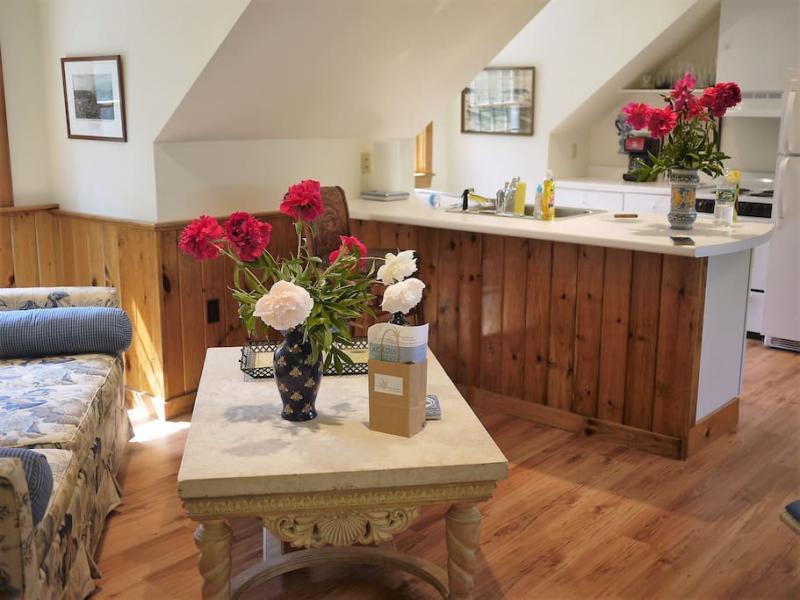Charming, private 1 bedroom, 1 bath loft apartment with king bed and amazing views. Located in the private neighborhood of Lookout Point, Rockbuilt Cottage Loft has views of Frenchman's Bay. Both modern and clean, this private setting on an estate in the historic private Lookout Point neighborhood in Bar Harbor.