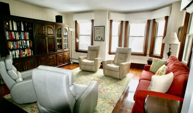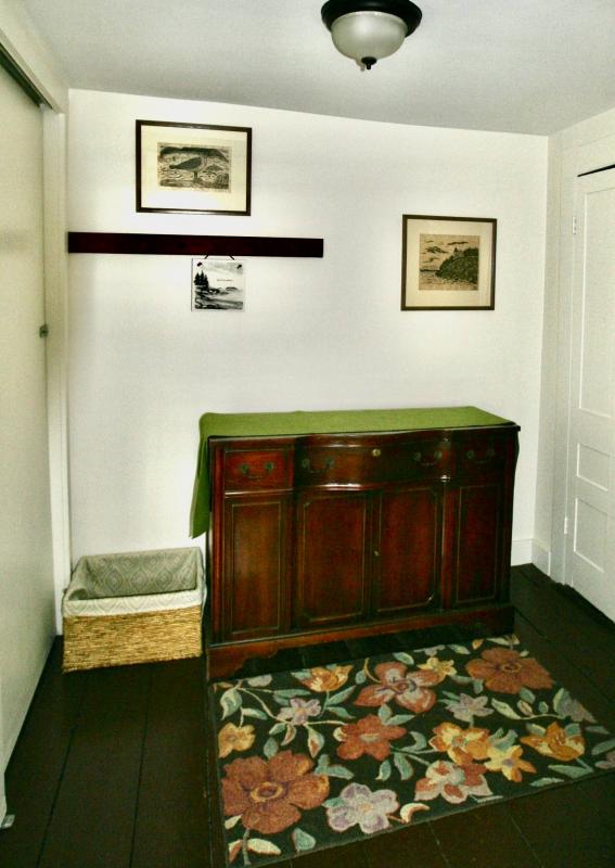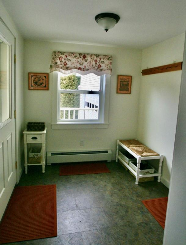 LAYOUT: FIRST LEVEL: Double entry/mudroom. Dining room. Well equipped modern kitchen. Sunroom w/three sliders to the back deck with views over the lawn. Living room. Laundry room. Bedroom with a queen bed. Update full bath with large glass shower (no tub).