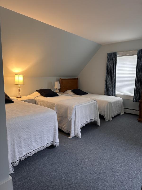 SECOND LEVEL: Bonus area with seating, a tv, kitchenette and desk area with harbor views. Bedroom with 3 twin beds and shared full bath (shower only) with laundry. This bathroom is also accessible from the hallway, that is located off the bonus seating area. There is another full bath (toilet and tub only) on the other side of this hallway, that is adjacent to another bedroom with king bed. The sink for this bathroom is located in the king bedroom. *NOTE: With advance notice, the twin bedroom can be made up as a king (2 twins together) and 1 twin.